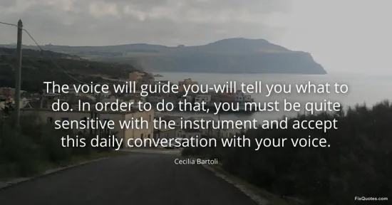 Bartoli, Cecilia. "The voice will guide you-will tell you what to do. In order to do that, you must be quite sensitive with the instrument and accept this daily conversation with your voice." FixQuotes. January 15, 2026. https://fixquotes.com/quotes/the-voice-will-guide-you-will-tell-you-what-to-do-142341/.