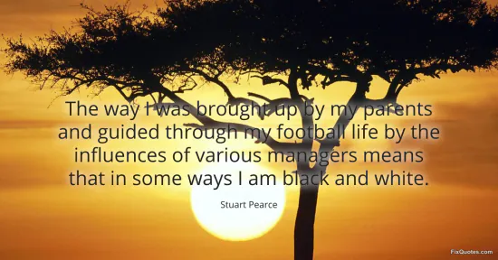 Pearce, Stuart. (2026, January 16). The way I was brought up by my parents and guided through my football life by the influences of various managers means that in some ways I am black and white. FixQuotes. https://fixquotes.com/quotes/the-way-i-was-brought-up-by-my-parents-and-guided-110541/