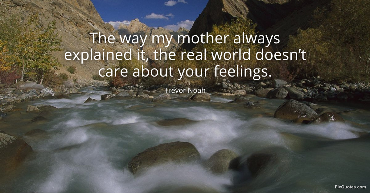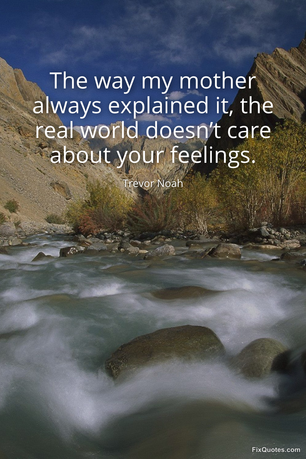 Noah, Trevor. "The way my mother always explained it, the real world doesn’t care about your feelings." FixQuotes. February 3, 2026. https://fixquotes.com/quotes/the-way-my-mother-always-explained-it-the-real-184882/.