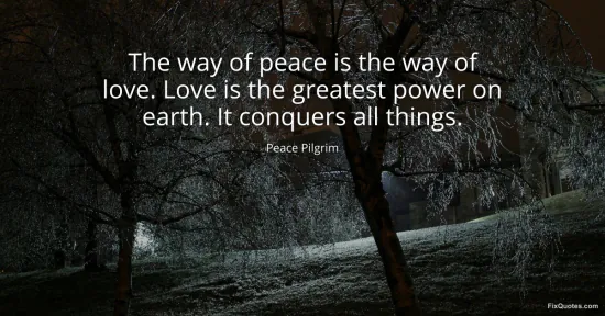 Pilgrim, Peace. "The way of peace is the way of love. Love is the greatest power on earth. It conquers all things." FixQuotes. January 15, 2026. https://fixquotes.com/quotes/the-way-of-peace-is-the-way-of-love-love-is-the-163673/.