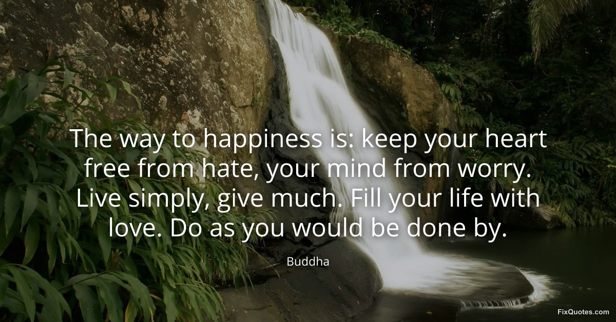 Buddha. (2026, March 10). The way to happiness is: keep your heart free from hate, your mind from worry. Live simply, give much. Fill your life with love. Do as you would be done by. FixQuotes. https://fixquotes.com/quotes/the-way-to-happiness-is-keep-your-heart-free-from-185807/