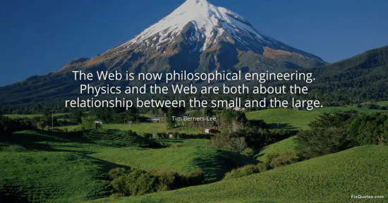 "The Web is now philosophical engineering. Physics and the Web are both about the relationship between the small and the large." FixQuotes, 15 Jan. 2026, https://fixquotes.com/quotes/the-web-is-now-philosophical-engineering-physics-11502/. Accessed 12 Feb. 2026.