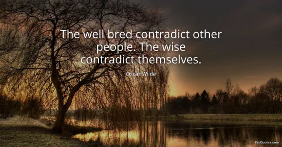 Wilde, Oscar. "The well bred contradict other people. The wise contradict themselves." FixQuotes. January 15, 2026. https://fixquotes.com/quotes/the-well-bred-contradict-other-people-the-wise-33390/.