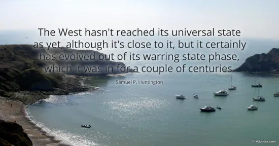 Huntington, Samuel P. (2026, February 20). The West hasn't reached its universal state as yet, although it's close to it, but it certainly has evolved out of its warring state phase, which it was in for a couple of centuries. FixQuotes. https://fixquotes.com/quotes/the-west-hasnt-reached-its-universal-state-as-yet-21559/
