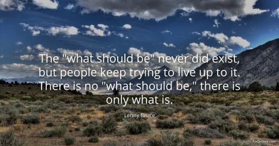 Bruce, Lenny. "The "what should be" never did exist, but people keep trying to live up to it. There is no "what should be," there is only what is." FixQuotes. January 17, 2026. https://fixquotes.com/quotes/the-what-should-be-never-did-exist-but-people-54745/.