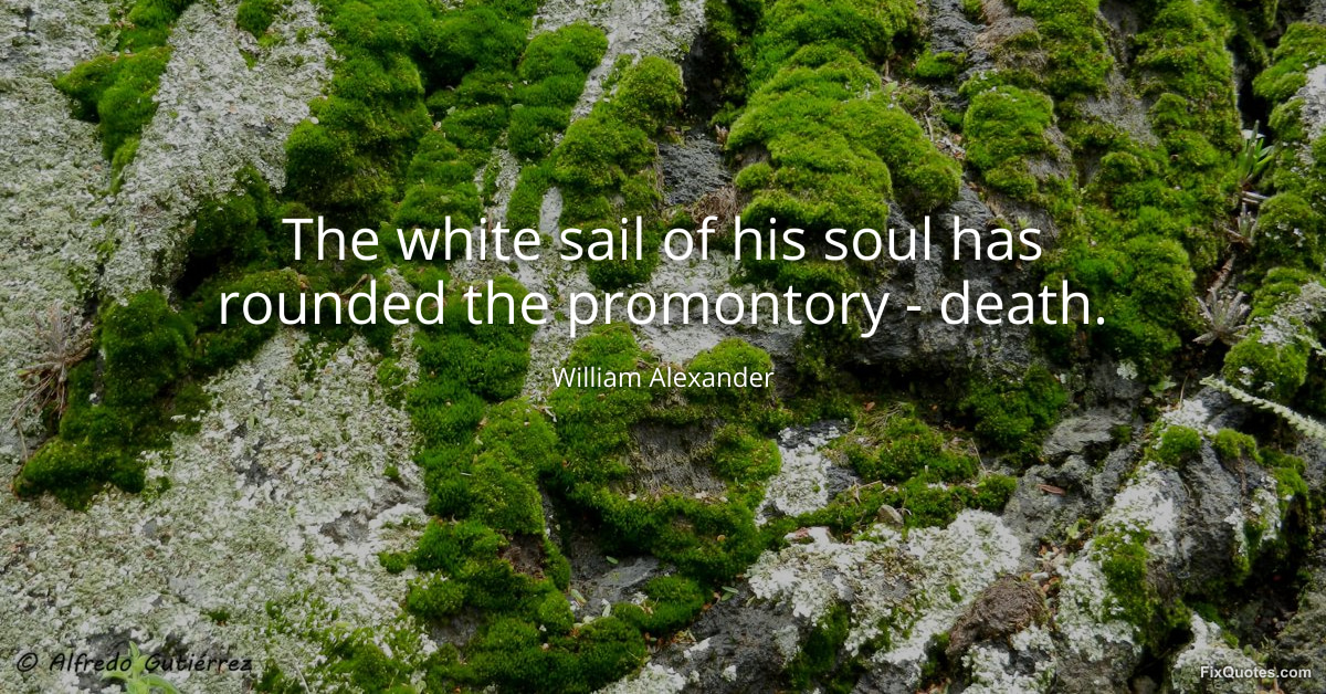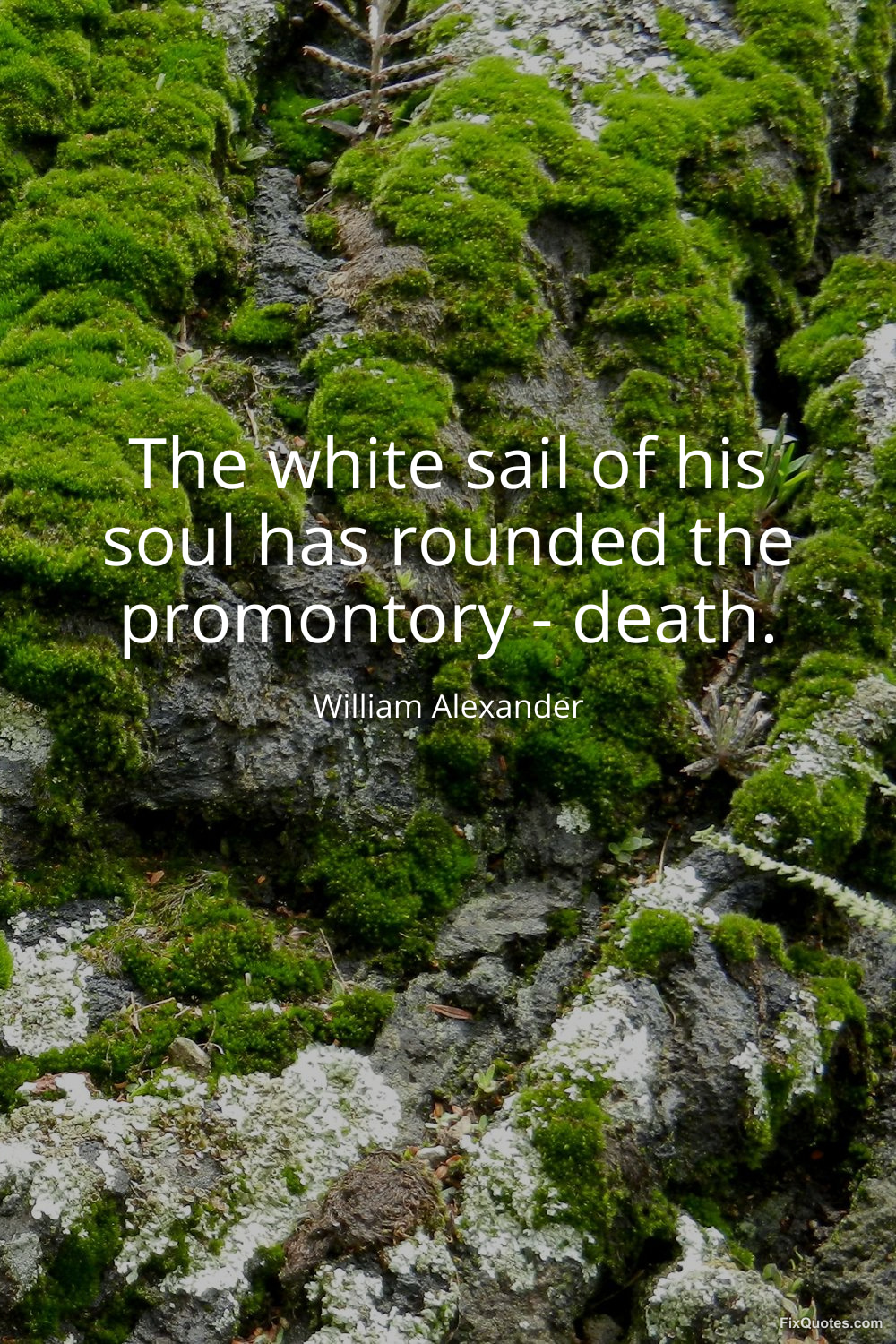 Alexander, William. (2026, January 15). The white sail of his soul has rounded the promontory - death. FixQuotes. https://fixquotes.com/quotes/the-white-sail-of-his-soul-has-rounded-the-170968/