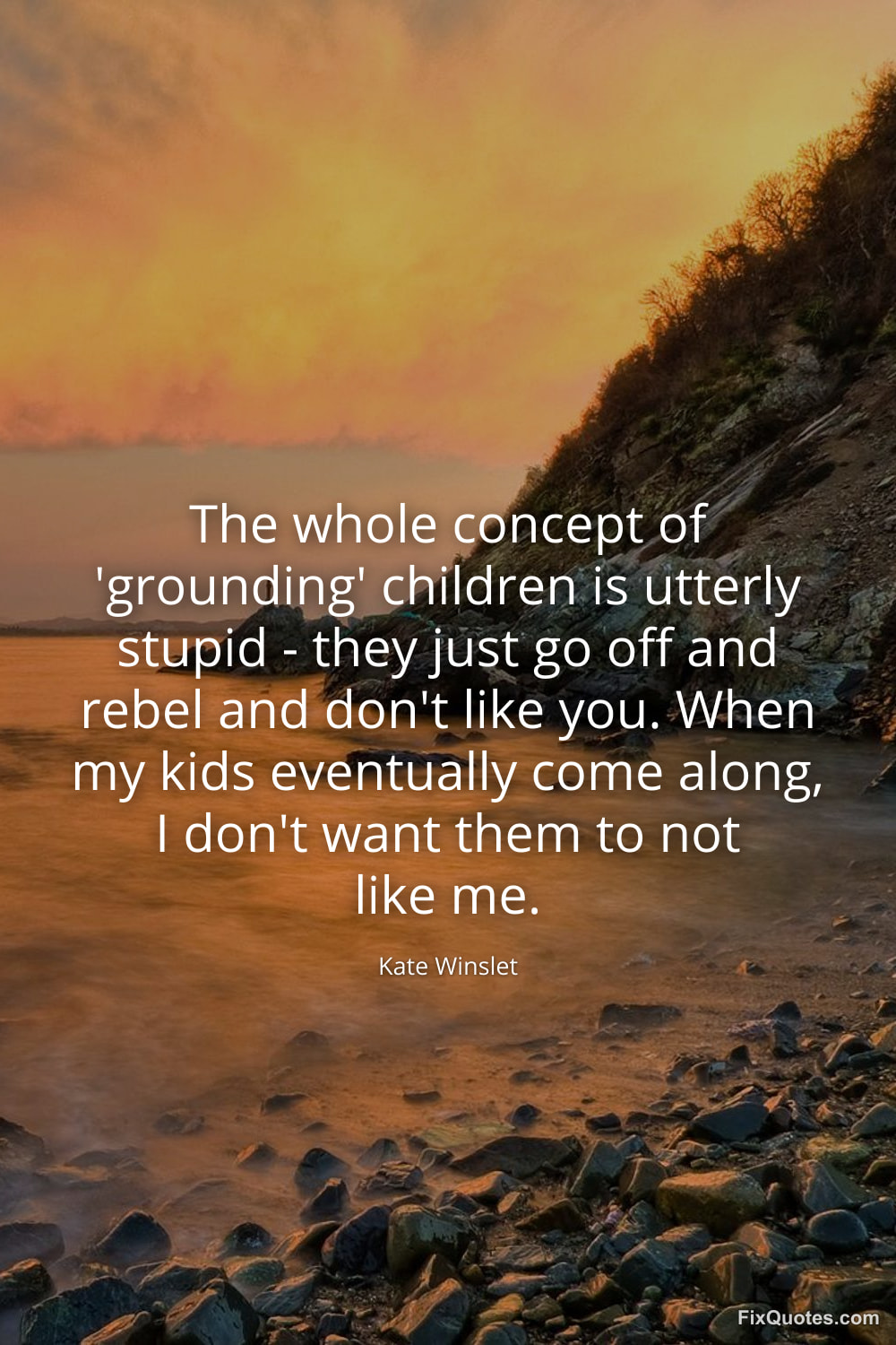 Winslet, Kate. (2026, January 15). The whole concept of 'grounding' children is utterly stupid - they just go off and rebel and don't like you. When my kids eventually come along, I don't want them to not like me. FixQuotes. https://fixquotes.com/quotes/the-whole-concept-of-grounding-children-is-162503/