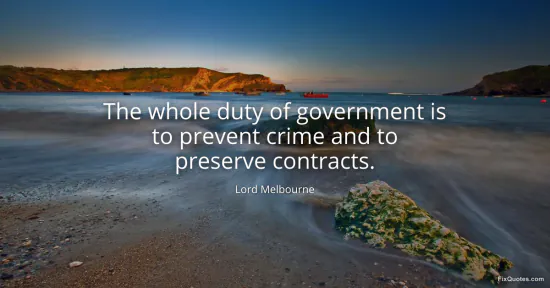 Melbourne, Lord. "The whole duty of government is to prevent crime and to preserve contracts." FixQuotes. January 18, 2026. https://fixquotes.com/quotes/the-whole-duty-of-government-is-to-prevent-crime-4751/.