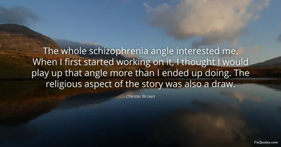 "The whole schizophrenia angle interested me. When I first started working on it, I thought I would play up that angle more than I ended up doing. The religious aspect of the story was also a draw"