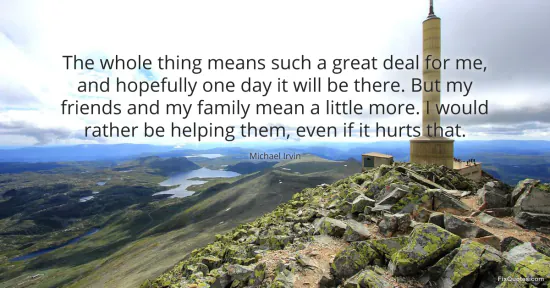 Irvin, Michael. "The whole thing means such a great deal for me, and hopefully one day it will be there. But my friends and my family mean a little more. I would rather be helping them, even if it hurts that." FixQuotes. January 16, 2026. https://fixquotes.com/quotes/the-whole-thing-means-such-a-great-deal-for-me-89635/.