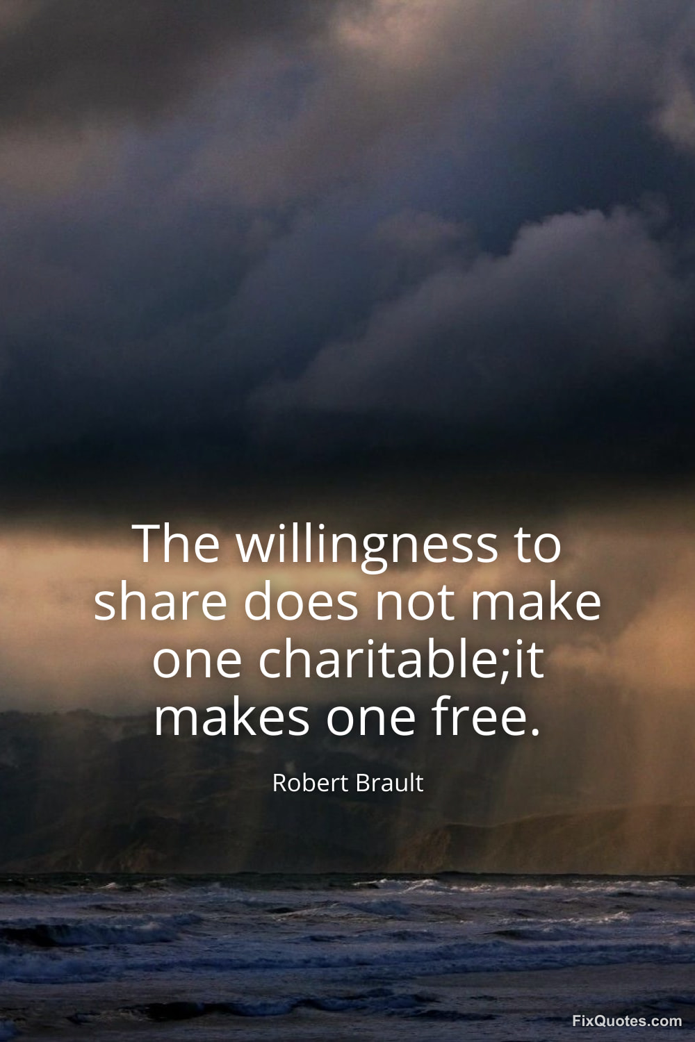 Brault, Robert. (2026, January 11). The willingness to share does not make one charitable;it makes one free. FixQuotes. https://fixquotes.com/quotes/the-willingness-to-share-does-not-make-one-183924/