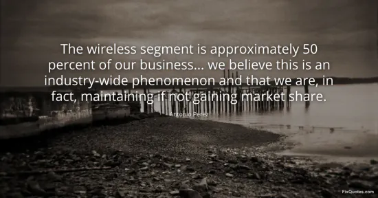 Perez, Antonio. (2026, January 17). The wireless segment is approximately 50 percent of our business... we believe this is an industry-wide phenomenon and that we are, in fact, maintaining if not gaining market share. FixQuotes. https://fixquotes.com/quotes/the-wireless-segment-is-approximately-50-percent-40718/