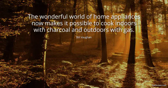 Vaughan, Bill. (2026, January 16). The wonderful world of home appliances now makes it possible to cook indoors with charcoal and outdoors with gas. FixQuotes. https://fixquotes.com/quotes/the-wonderful-world-of-home-appliances-now-makes-139494/