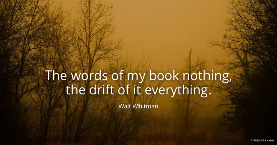 Whitman, Walt. (2026, January 17). The words of my book nothing, the drift of it everything. FixQuotes. https://fixquotes.com/quotes/the-words-of-my-book-nothing-the-drift-of-it-29004/