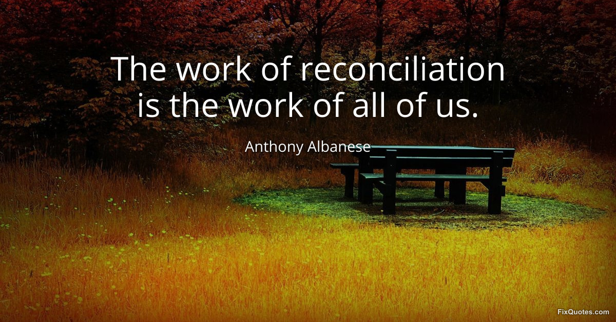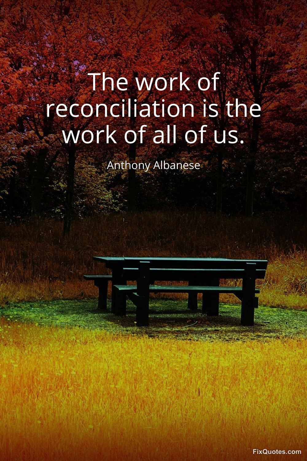 Albanese, Anthony. (2026, January 26). The work of reconciliation is the work of all of us. FixQuotes. https://fixquotes.com/quotes/the-work-of-reconciliation-is-the-work-of-all-of-184625/