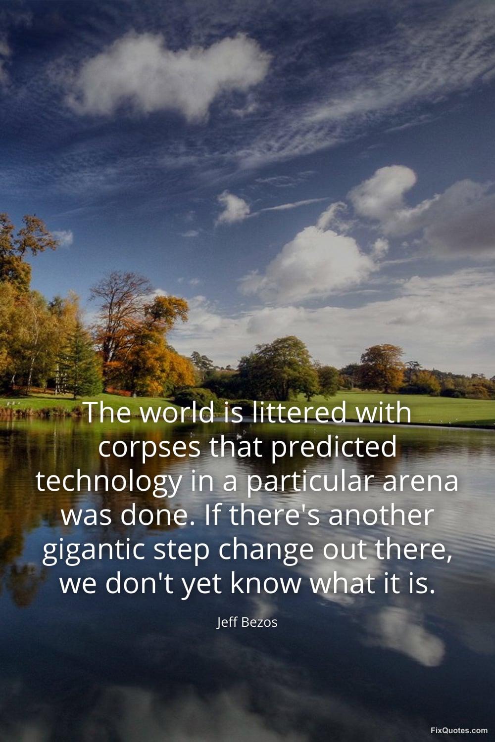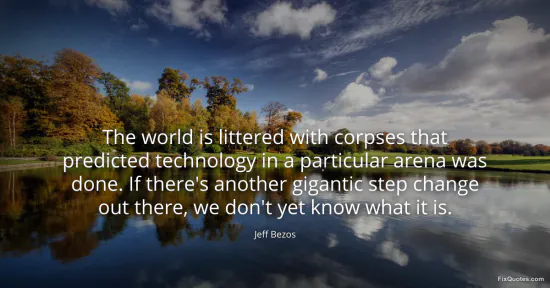 Bezos, Jeff. (2026, March 25). The world is littered with corpses that predicted technology in a particular arena was done. If there's another gigantic step change out there, we don't yet know what it is. FixQuotes. https://fixquotes.com/quotes/the-world-is-littered-with-corpses-that-predicted-186468/