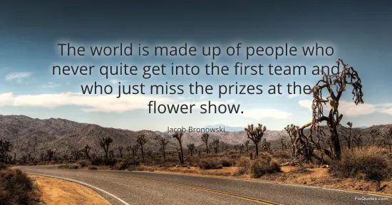 Bronowski, Jacob. (2026, January 18). The world is made up of people who never quite get into the first team and who just miss the prizes at the flower show. FixQuotes. https://fixquotes.com/quotes/the-world-is-made-up-of-people-who-never-quite-5535/