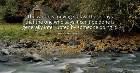 Fosdick, Harry Emerson. "The world is moving so fast these days that the one who says it can't be done is generally interrupted by someone doing it." FixQuotes. January 17, 2026. https://fixquotes.com/quotes/the-world-is-moving-so-fast-these-days-that-the-43713/.