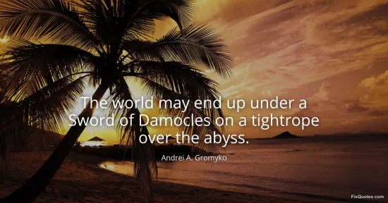 Gromyko, Andrei A. "The world may end up under a Sword of Damocles on a tightrope over the abyss." FixQuotes. January 15, 2026. https://fixquotes.com/quotes/the-world-may-end-up-under-a-sword-of-damocles-on-161969/.