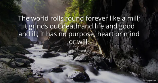 Thomson, James. "The world rolls round forever like a mill; it grinds out death and life and good and ill; it has no purpose, heart or mind or will." FixQuotes. January 17, 2026. https://fixquotes.com/quotes/the-world-rolls-round-forever-like-a-mill-it-60378/.