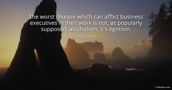 Geneen, Harold S. "The worst disease which can afflict business executives in their work is not, as popularly supposed, alcoholism; it's egotism." FixQuotes. January 18, 2026. https://fixquotes.com/quotes/the-worst-disease-which-can-afflict-business-12985/.