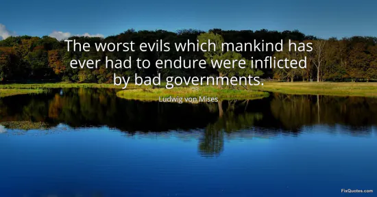 Mises, Ludwig von. (2026, January 14). The worst evils which mankind has ever had to endure were inflicted by bad governments. FixQuotes. https://fixquotes.com/quotes/the-worst-evils-which-mankind-has-ever-had-to-87785/