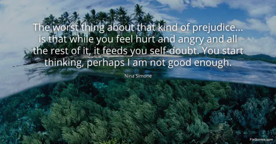 Simone, Nina. "The worst thing about that kind of prejudice... is that while you feel hurt and angry and all the rest of it, it feeds you self-doubt. You start thinking, perhaps I am not good enough." FixQuotes. January 16, 2026. https://fixquotes.com/quotes/the-worst-thing-about-that-kind-of-prejudice-is-115233/.
