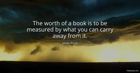 Bryce, James. (2026, January 17). The worth of a book is to be measured by what you can carry away from it. FixQuotes. https://fixquotes.com/quotes/the-worth-of-a-book-is-to-be-measured-by-what-you-66380/