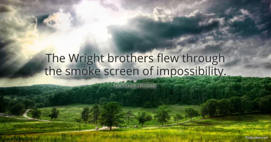 The subtext is a rebuke to the gatekeepers of the possible. “Impossibility” here isn’t a neutral assessment; it’s a story society tells to protect itself from embarrassment, expense, and the risk of being wrong. By calling it a smoke screen, Brande hints at complicity: we participate in the fog because it’s comforting, because it makes our own inaction feel prudent. The Wright brothers become her shorthand for the creative act itself: proceed as if the chorus of “can’t” is just bad visibility.
