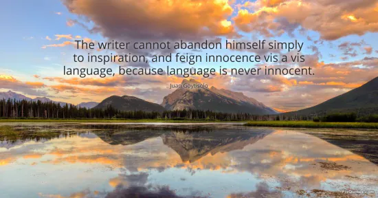 Goytisolo, Juan. (2026, January 17). The writer cannot abandon himself simply to inspiration, and feign innocence vis a vis language, because language is never innocent. FixQuotes. https://fixquotes.com/quotes/the-writer-cannot-abandon-himself-simply-to-80482/