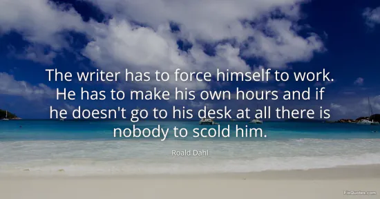 Dahl, Roald. (2026, January 17). The writer has to force himself to work. He has to make his own hours and if he doesn't go to his desk at all there is nobody to scold him. FixQuotes. https://fixquotes.com/quotes/the-writer-has-to-force-himself-to-work-he-has-to-71136/