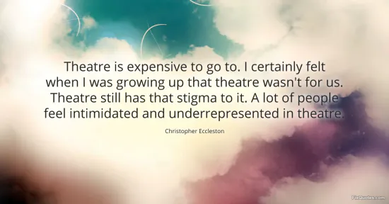 Eccleston, Christopher. (2026, January 17). Theatre is expensive to go to. I certainly felt when I was growing up that theatre wasn't for us. Theatre still has that stigma to it. A lot of people feel intimidated and underrepresented in theatre. FixQuotes. https://fixquotes.com/quotes/theatre-is-expensive-to-go-to-i-certainly-felt-79723/