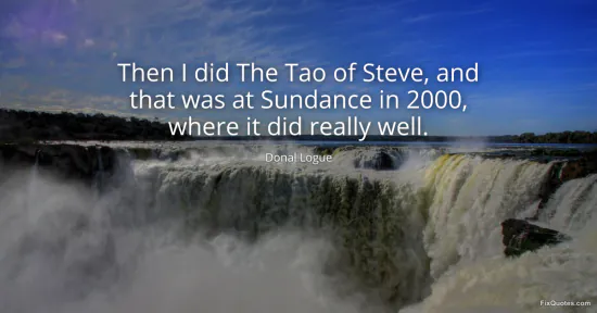 Logue, Donal. "Then I did The Tao of Steve, and that was at Sundance in 2000, where it did really well." FixQuotes. February 16, 2026. https://fixquotes.com/quotes/then-i-did-the-tao-of-steve-and-that-was-at-147714/.