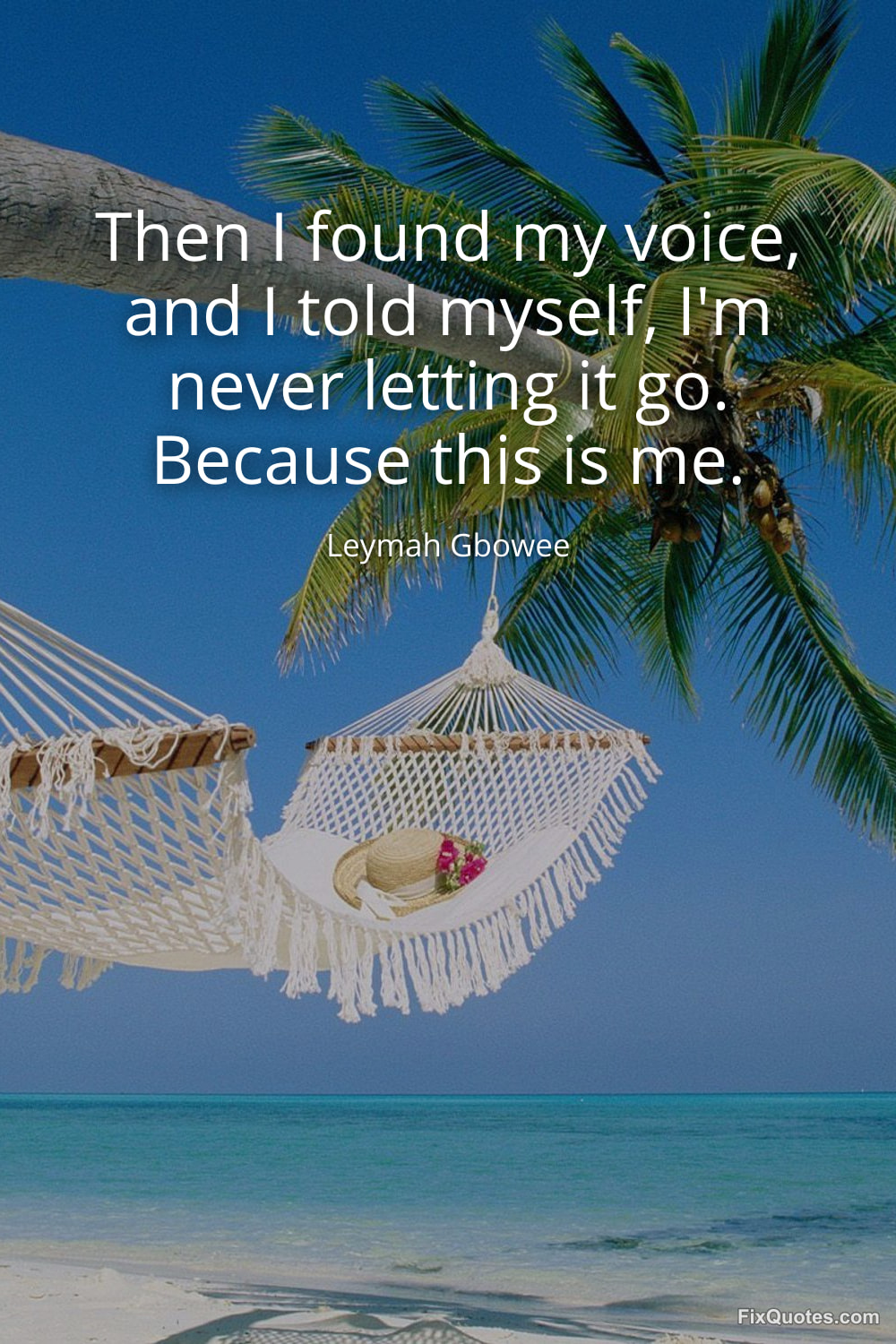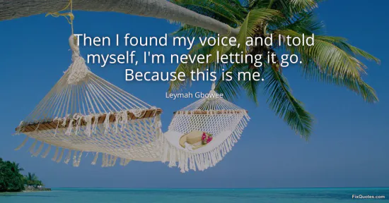 Gbowee, Leymah. "Then I found my voice, and I told myself, I'm never letting it go. Because this is me." FixQuotes. February 16, 2026. https://fixquotes.com/quotes/then-i-found-my-voice-and-i-told-myself-im-never-185426/.