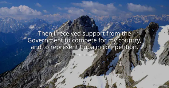 "Then I received support from the Government to compete for my country, and to represent Cuba in competition." FixQuotes, https://fixquotes.com/quotes/then-i-received-support-from-the-government-to-139368/. Accessed 2 Feb. 2026.