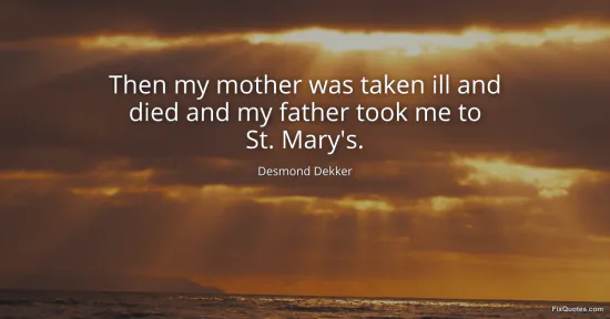Dekker, Desmond. (2026, January 17). Then my mother was taken ill and died and my father took me to St. Mary's. FixQuotes. https://fixquotes.com/quotes/then-my-mother-was-taken-ill-and-died-and-my-48770/