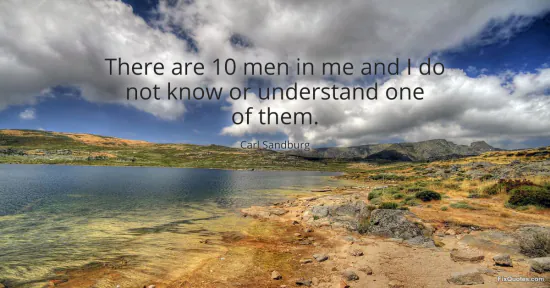 Sandburg, Carl. "There are 10 men in me and I do not know or understand one of them." FixQuotes. January 17, 2026. https://fixquotes.com/quotes/there-are-10-men-in-me-and-i-do-not-know-or-59608/.