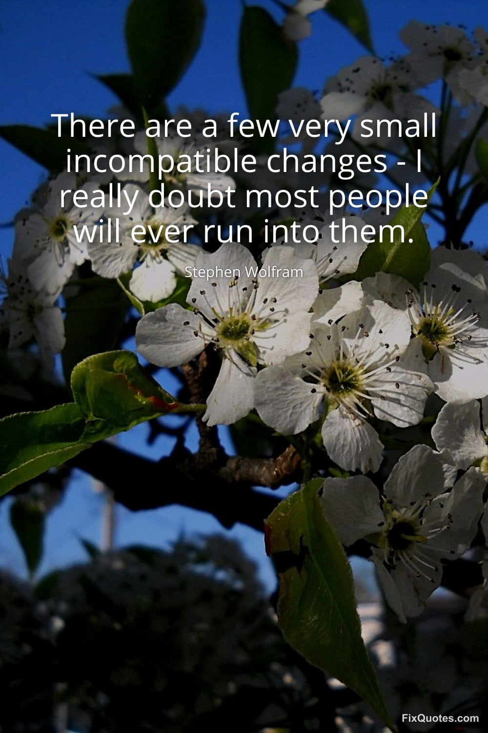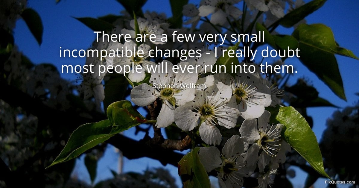 Wolfram, Stephen. (2026, January 15). There are a few very small incompatible changes - I really doubt most people will ever run into them. FixQuotes. https://fixquotes.com/quotes/there-are-a-few-very-small-incompatible-changes-151448/