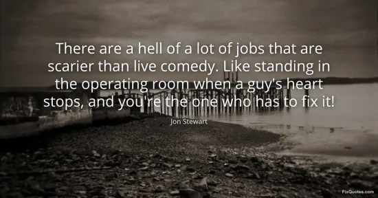 Stewart, Jon. "There are a hell of a lot of jobs that are scarier than live comedy. Like standing in the operating room when a guy's heart stops, and you're the one who has to fix it!" FixQuotes. January 18, 2026. https://fixquotes.com/quotes/there-are-a-hell-of-a-lot-of-jobs-that-are-19099/.