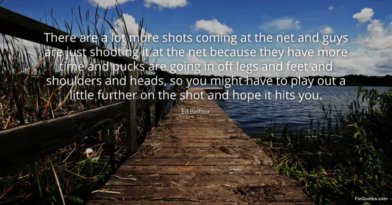 Belfour, Ed. (2026, January 18). There are a lot more shots coming at the net and guys are just shooting it at the net because they have more time and pucks are going in off legs and feet and shoulders and heads, so you might have to play out a little further on the shot and hope it hits you. FixQuotes. https://fixquotes.com/quotes/there-are-a-lot-more-shots-coming-at-the-net-and-10866/