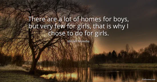 Makeba, Miriam. (2026, January 16). There are a lot of homes for boys, but very few for girls, that is why I chose to do for girls. FixQuotes. https://fixquotes.com/quotes/there-are-a-lot-of-homes-for-boys-but-very-few-105684/