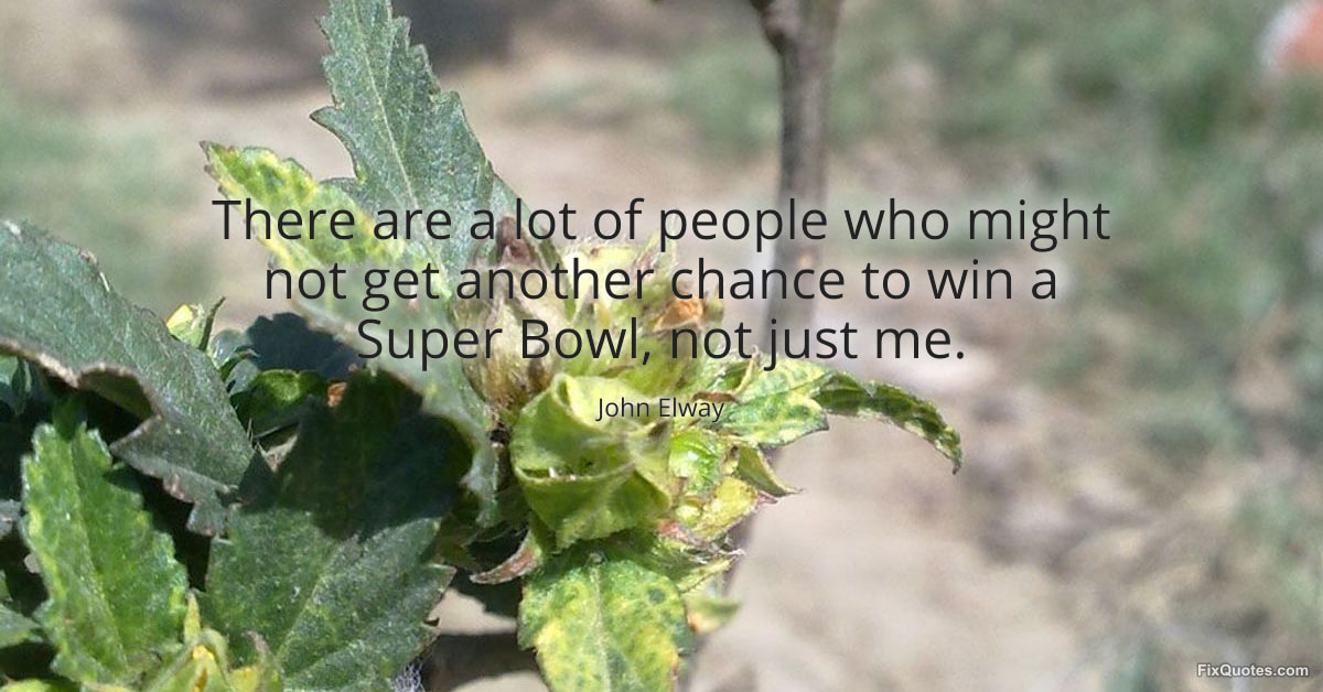 Elway, John. (2026, January 15). There are a lot of people who might not get another chance to win a Super Bowl, not just me. FixQuotes. https://fixquotes.com/quotes/there-are-a-lot-of-people-who-might-not-get-151599/