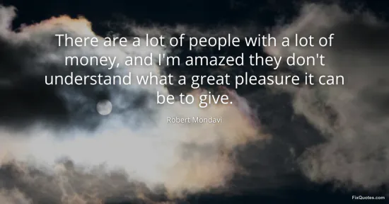 Mondavi, Robert. "There are a lot of people with a lot of money, and I'm amazed they don't understand what a great pleasure it can be to give." FixQuotes. January 15, 2026. https://fixquotes.com/quotes/there-are-a-lot-of-people-with-a-lot-of-money-and-151250/.