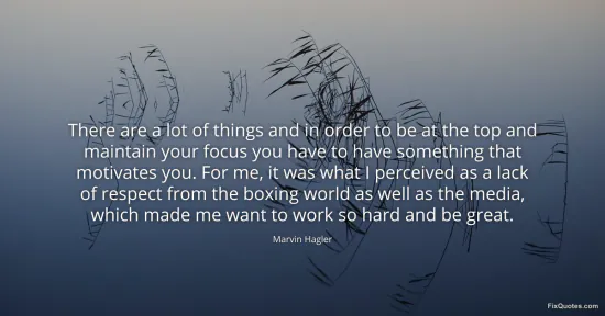 Hagler, Marvin. "There are a lot of things and in order to be at the top and maintain your focus you have to have something that motivates you. For me, it was what I perceived as a lack of respect from the boxing world as well as the media, which made me want to work so hard and be great." FixQuotes. January 16, 2026. https://fixquotes.com/quotes/there-are-a-lot-of-things-and-in-order-to-be-at-135727/.