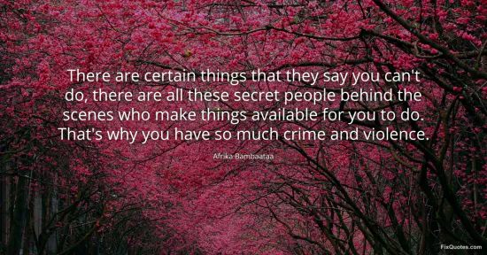 Bambaataa, Afrika. "There are certain things that they say you can't do, there are all these secret people behind the scenes who make things available for you to do. That's why you have so much crime and violence." FixQuotes. January 16, 2026. https://fixquotes.com/quotes/there-are-certain-things-that-they-say-you-cant-138781/.