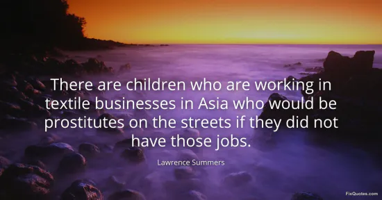 Summers, Lawrence. (2026, January 15). There are children who are working in textile businesses in Asia who would be prostitutes on the streets if they did not have those jobs. FixQuotes. https://fixquotes.com/quotes/there-are-children-who-are-working-in-textile-153737/