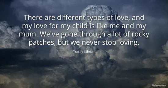 Ullman, Tracey. (2026, January 16). There are different types of love, and my love for my child is like me and my mum. We've gone through a lot of rocky patches, but we never stop loving. FixQuotes. https://fixquotes.com/quotes/there-are-different-types-of-love-and-my-love-for-107847/