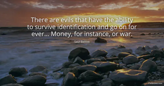 Bellow, Saul. (2026, February 20). There are evils that have the ability to survive identification and go on for ever... Money, for instance, or war. FixQuotes. https://fixquotes.com/quotes/there-are-evils-that-have-the-ability-to-survive-21144/