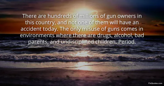 Nugent, Ted. (2026, January 17). There are hundreds of millions of gun owners in this country, and not one of them will have an accident today. The only misuse of guns comes in environments where there are drugs, alcohol, bad parents, and undisciplined children. Period. FixQuotes. https://fixquotes.com/quotes/there-are-hundreds-of-millions-of-gun-owners-in-74114/