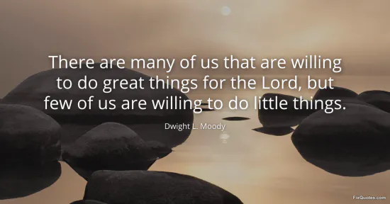 Moody, Dwight L. "There are many of us that are willing to do great things for the Lord, but few of us are willing to do little things." FixQuotes. January 15, 2026. https://fixquotes.com/quotes/there-are-many-of-us-that-are-willing-to-do-great-30950/.